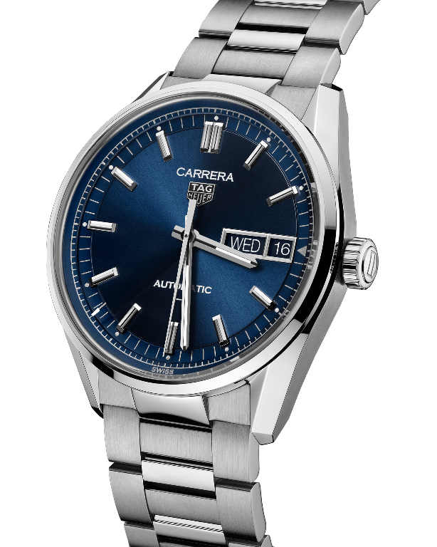 Introducing the TAG Heuer Carrera Day-Date in our signature blue, featuring the TH31-02 movement for an impeccable blend of performance and style. The sunray-brushed finish adds depth to this iconic design.